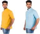 100% Cotton Full Sleeve Solid Straight Kurta For Men and Boys (Pack of 2)
