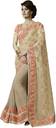 Stunning Beige Net And Georgette Saree design with Embroidery.Golden Brocade Blouse Comes as an Unstitched Material.(slight Variation in Color/Work/Fabric is Possible.The Blouse comes as Unstitched Material)