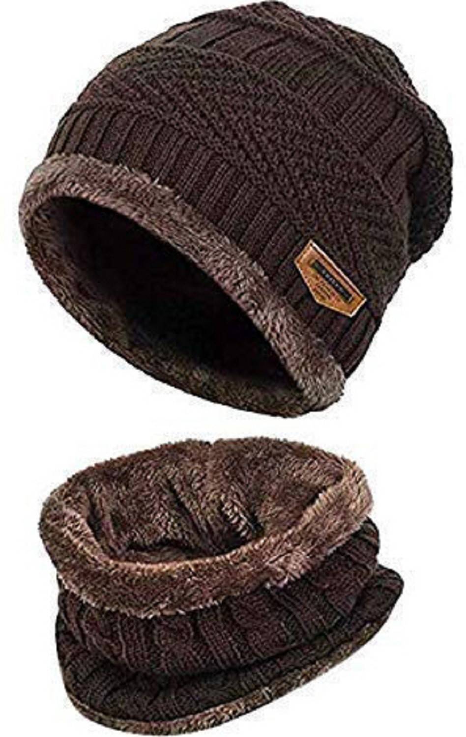 Warm Unisex Woolen Beanie Cap with Neck Muffler for boys and girls, Stretchable