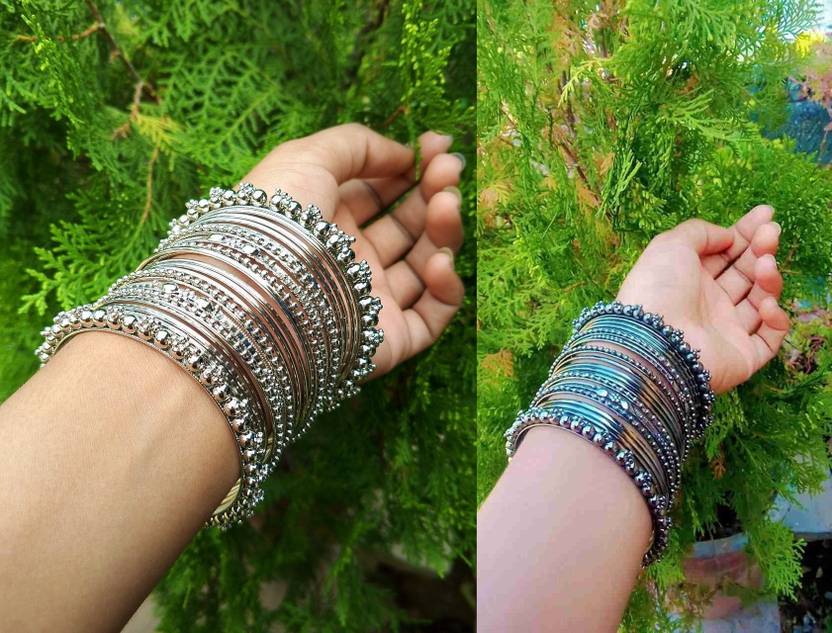 Silver Plated Traditional Ethnic Party Wear Bangle Set for Women & Girls