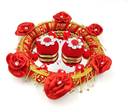 DesiCrafts engagement ring plate Wood Decorative Platter (Red, Yellow)