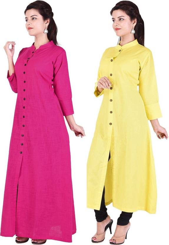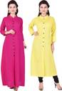 Desier Pack of 2 Women Solid Viscose Rayon Gown Kurta (Pink, Yellow)