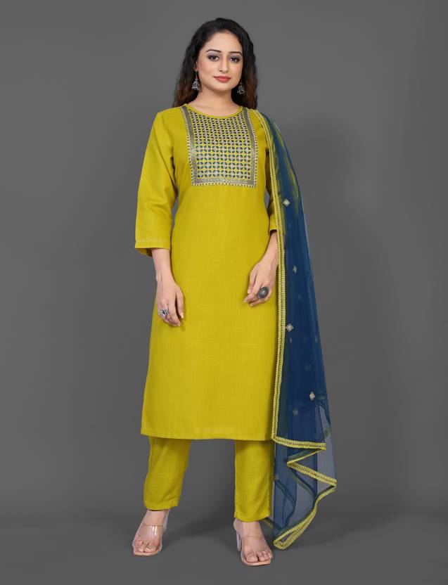 Women Cotton Rayon Kurta Pant Dupatta Set