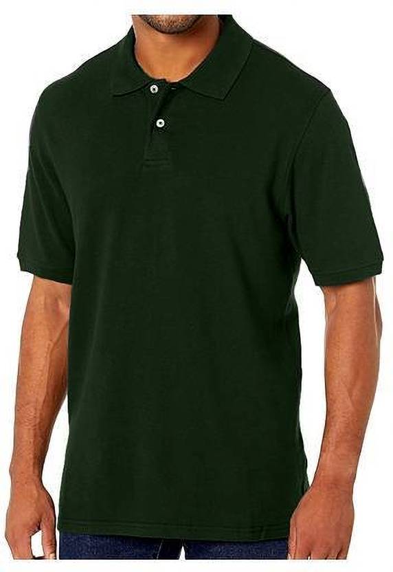 Men Solid Polo Neck Pure Cotton Dark Green T-Shirt