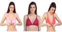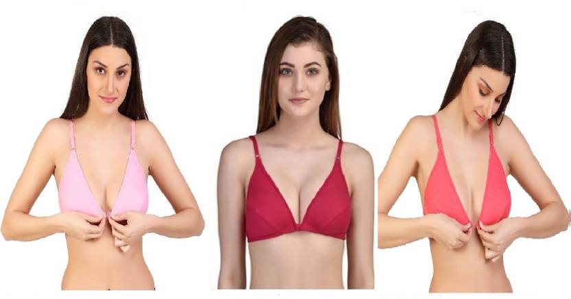 Zourt Stylish B Cup Front Open Bra Set of 3 Women Plunge Non Padded Bra (Pink, Red, Orange)