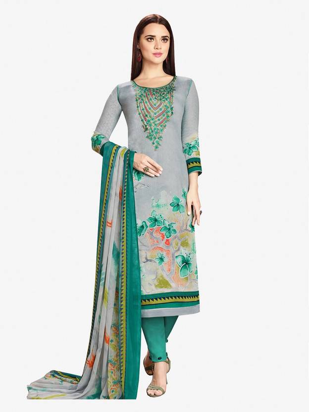 Unstitched Cotton Blend Kurta & Churidar Material Printed