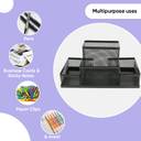DeskFlex Metal Stationery Items Organizer for Office and Home Table Top Pen Pencil Holder | Desk Organiser Or Study, Makeup, Remote, Kitchen (4 Compartments) - Space-Saving Design: The compact and space-saving design of the Pen Stand makes it an ideal choice for any desk or workspace. Maximize your desk space while keeping everything within easy reach. Versatile Compartments: With four compartments of varying sizes, this organizer accommodates pens, pencils, markers, scissors, and other office supplies. Sleek and Modern Aesthetics Stationery Organizer: The modern design of the Yajnas table organizer pen stand for office adds a touch of sophistication to your workspace. Multi-Purpose Functionality: Beyond pen holder and pencils holder, use as a makeup box organizer, desk organiser art supplies, or even kitchen utensils. Ideal Gift: Surprise a colleague, friend, or family member with the Yajnas Compartment Pen Stand. Ideal for Office, Home, Student, Makeup artist, Medicine organizers etc.