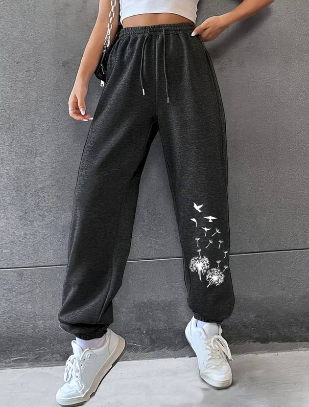 Women Printed Black Track Pants
