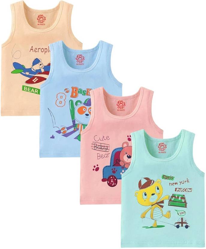 Printed Baby Vest for Kids Cotton Sleeveless Sando Baniyan Toddler Innerwear Baby Cloth for Boys & Girls ( Pack of 4 )