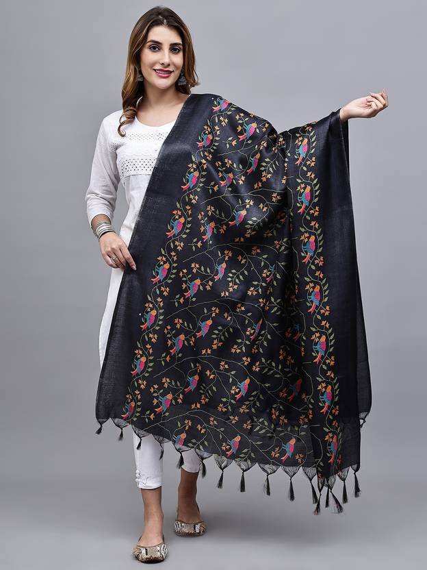 Add a touch of ethnic elegance to your wardrobe with this Chanderi Cotton Dupatta featuring exquisite embroidery and stone work. Measuring 225 x 100 cm, this soft and lightweight fabric drapes beautifully, offering comfort with style. The traditional checks pattern combined with decorative tassels & latkans on the borders enhances its festive appeal. Whether you're styling it with a kurta, choli, dress, or pants, this dupatta is a versatile companion for party occasions. Designed to reflect cultural richness with a modern edge, this is an essential piece for your ethnic collection. Avoid using a brush while washing to maintain the delicate work. Proudly made in India.