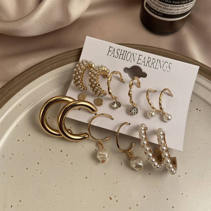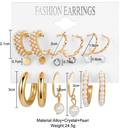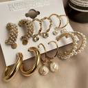 New Trendy Stylish Trendy 9 Pair Drop Pearl Décor Hoop Earrings Set