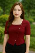 DESTINYPPAREL Casual Solid Women Maroon Top