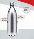 DEURALUX Aqua 1000 Steel Vacuum Flask 1 liter 24 Hr Cold and Hot Bottle 1000 ml Steel Bottle (Pack of 1, Silver)