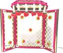 A foldable phool bangla to place as a backdrop for your temple decoration on Special Occasions like Krishna Janmashtmi, Bhajan Functions, Festivals, Diwali, Etc or in Daily Basis also. Beautifully design Wooden and plastic Lord Krishna ji BANGLA with Gota and Kinaari work, Artificial flowers and High Quality Furry strings for perfect Phool Bangla Look