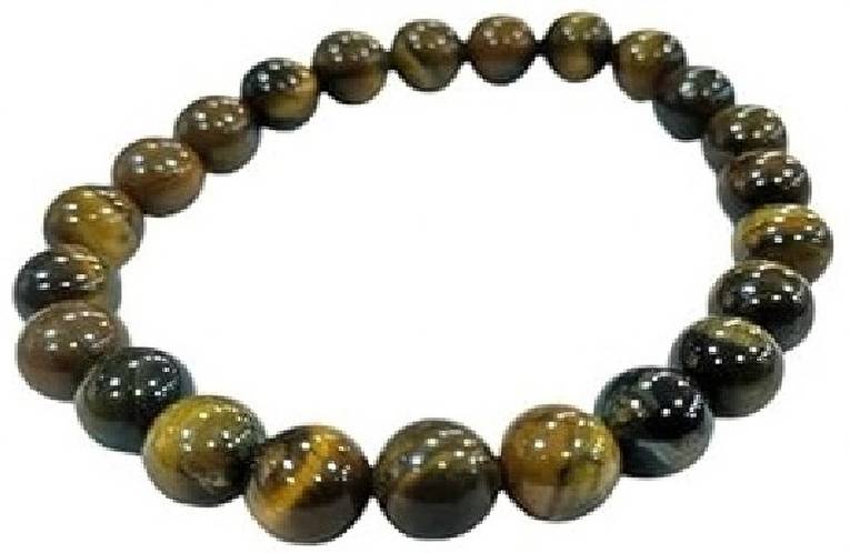 Dev Samagri Original Tiger Eye Bracelet for Woman and Men with Evil Eye - Natural Energised Brown beads Bracelet for Courage, Protection and Will Power - 8MM Beads