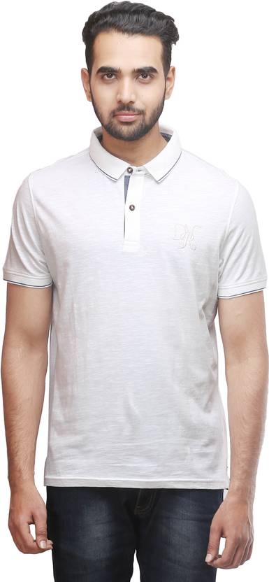 DevĀ Men Solid Polo Neck Cotton Blend White T-Shirt