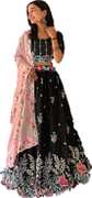 Embroidered Semi Stitched Lehenga Choli (Black)