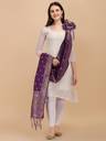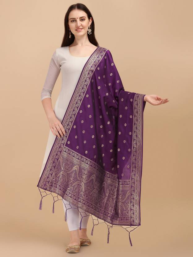 The traditional Banarasi dupatta is made of silk, often pure silk or art silk, though there are also variations made from blends of cotton or georgette. The silk fabric gives it a rich sheen and soft texture that enhances its luxurious feel. The dupatta drapes elegantly, making it a perfect complement to festive or formal attire.