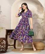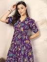 DEVDHAM Women Fit and Flare Purple Midi/Calf Length Dress