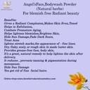 . This Ayurvedic herbal formula act like a sponge that absorbs excess oil while drawing out toxins and impurities from your pores Angel bath powder adds a soothing, moisturizing component. This recipe is highly beneficial to all skin types. Use it as a daily cleanser.By regular use: Radiant Complexion, makes skin even, toned helps in exfoliation, Combats Premature Aging, Brighten Skin, Hide Sun Damage, Fade Dark Scars, Treat Acne. It can remove the excess hair from the face especially the mouth and chin. The vitamin C present helps in collagen production, which in turn helps heal & lighten skin blemishes,. Dry, flaky, scaly, or rough skin Is made luster skin. Tightens skin . Bridal skincare. It’s a great, natural remedy to help lighten the skin after delivery, It reduces , prevents tanning and pigmentation during menopause.Get a perfectly even tone by opting for DevElixir Natural Cosmetics Angel bath powder It can help you immensely in exfoliating the upper dead skin cell layer and revealing a fresh layer of skin underneath Angel bath powder prevents skin aging., hydrates the skin, and improves skin elasticity. Apart from using Angel bath powder for skin whitening, which packed with Turmeric, champaca Bakhuchi, Marjram, Red sandalwood, white sandal wood, kostam and Ayurvedic extacts Angel bath powder is generally applied on brides to look perfect on their big day. The extract turmeric, sandalwood powder (chandan) It is provide a flawless skin and glowing complexion.Apply every morning and evening on thoroughly cleansed face. Gently massage it into the skin using light circular movements, moving from inside of your face outwards and from the base of your neck to the top. As your wish, For Normal skin, oil skin , combination skin – Mix with rose water, For Dry skin – Mix with Milk to form a paste. Apply to moist skin Leave it on for 5 - 10 minutes, lightly massage wash off with water. It is recommended to use all seasons. Use as Bath Powder, Regular face wash powder. Angel bath powder enough for face and neck 2-3 tsp and for bath/body wash 15-20 tsp .