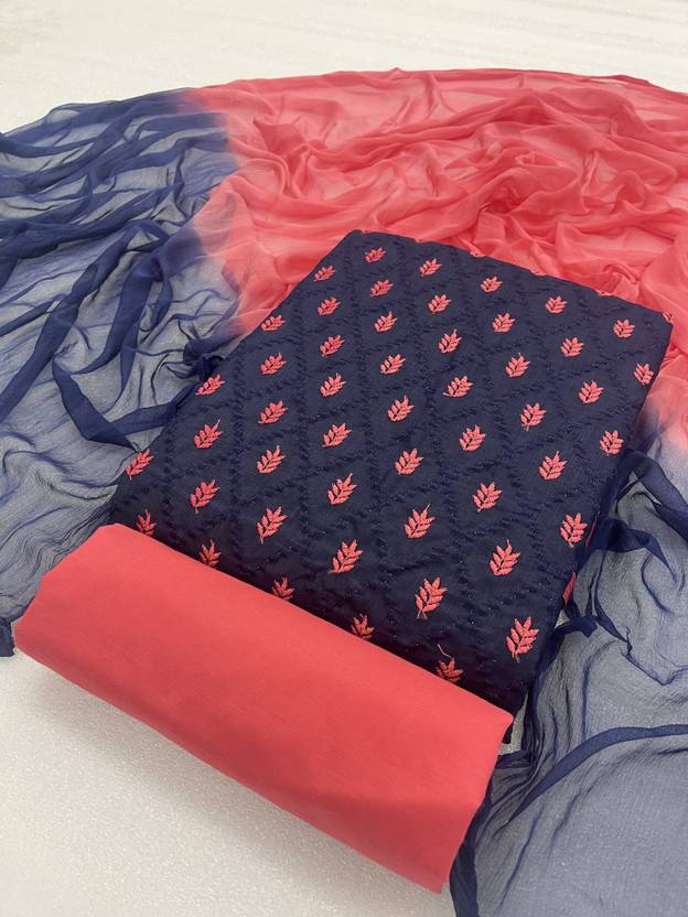 Unstitched Cotton Blend Salwar Suit Material Embroidered