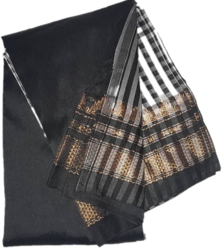 Ready to Wear Checkered Handloom Cotton Silk Saree (White, Black)