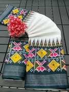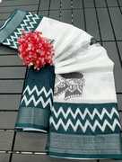 This Beautiful Women’s Digital Premium Printed Linen Abstract Saree Fabricated With 100% Cotton Linen Is Sure To Keep You Comfortable In Summers ,Winters,Monsoon,The Saree Comes With Blouse Piece.