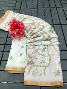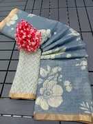 WOMEN'S PARTY WEAR BOLLYWOOD STYLE LINEN COTTON SAREE