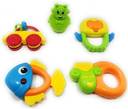 EARLY EDUCATION INFANT TOYS: From 3-18 months where they are just beginning to grasp things on purpose, shaking, pulling, roating or on to teething.It contains 5 Rattles and Teether.baby rattle collection is a great value. Rattle are sure to capture baby's attention. Multi-textured handles are easy for baby to grasp and explore and high contrast colours stimulate baby's developing vision. There are 8 different rattles, each are colourful and differ in shapes and sizes. The big baby bottle stores the toys for easy clean-up. It can also double as a coin bank. Your baby will love playing with so many rattle toys; For ages 6 months and up. 100% Safety : This rattle is made of BPA Free ABS plastic of non-toxic eco-friendly material,safe for children to get it on mouth or chew on. A perfect Gift for newborn baby. Development toys: Helps strengthen baby's sensory ,motor and hand and eye cordination skills different colors,various shapes,unique design can develop baby recoginition ability.