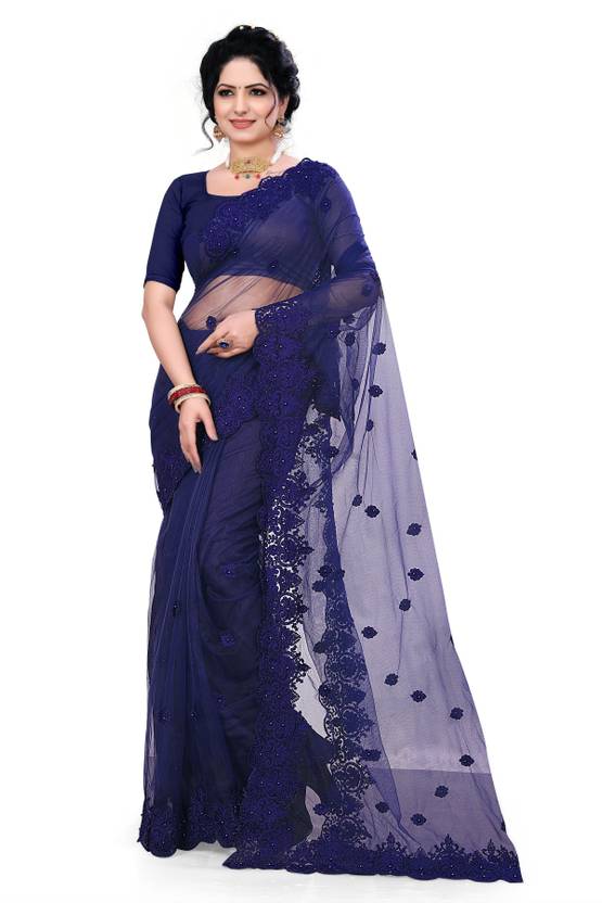 RMV Fashion Embroidered Bollywood Net Saree (Blue)