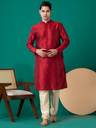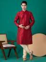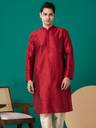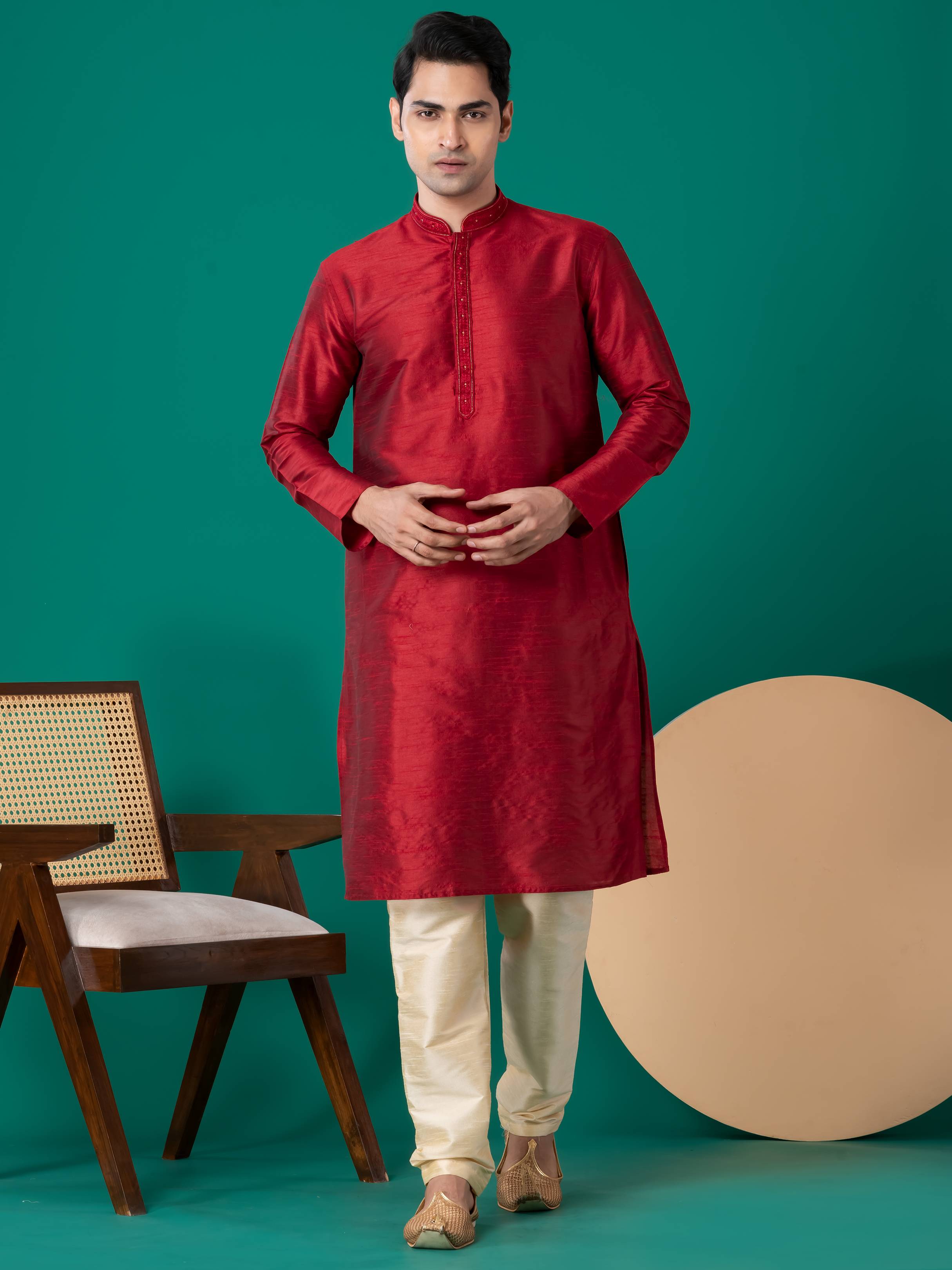 Men Embroidered Dupion Silk, Silk Blend Straight Kurta (Maroon)