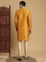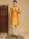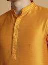 Men Embroidered Dupion Silk, Silk Blend Straight Kurta (Yellow)
