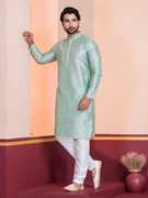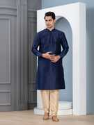 Elevate your ethnic style with this Dupion Silk Kurta . Crafted from premium fabric, it offers a regal look with a refined finish. Perfect for festive occasions and celebrations.
