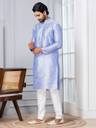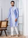 Men Embroidered Dupion Silk, Silk Blend Straight Kurta (Light Blue)