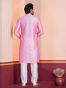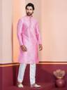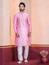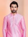 Men Embroidered Dupion Silk, Silk Blend Straight Kurta (Pink)