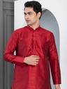 Woven Design Band Collar Dupion Silk Straight Kurta