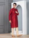 Elevate your ethnic style with this Dupion Silk Kurta and White pyjama set. Crafted from premium fabric, it offers a regal look with a refined finish. Perfect for festive occasions and celebrations.