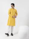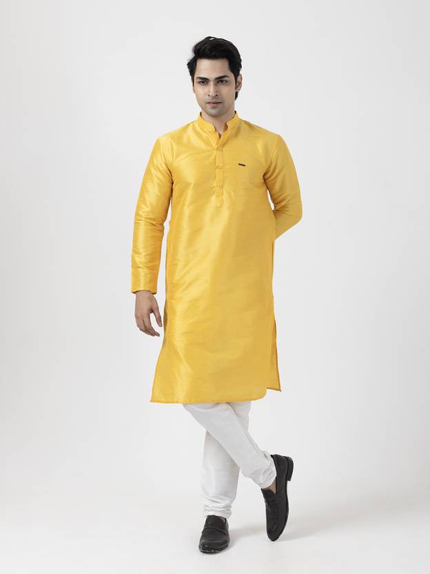 Elevate your ethnic style with this Dupion Silk Kurta and White pyjama set. Crafted from premium fabric, it offers a regal look with a refined finish. Perfect for festive occasions and celebrations.