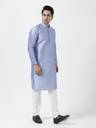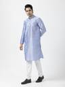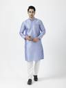 DEVOILER Men Solid Art Silk Straight Kurta (Light Blue)