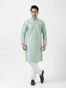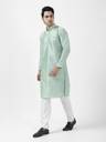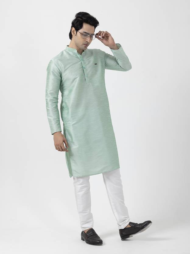 DEVOILER Men Solid Art Silk Straight Kurta (Light Green)