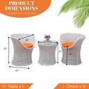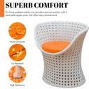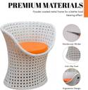 Transform your outdoor space into a cozy retreat with this stylish and practical 3-piece Rattan Wicker Patio Set, designed to bring both comfort and charm to your front porch, balcony, garden, or backyard. Crafted with a modern eye and a nod to timeless elegance, this set includes two ergonomic armchairs and a compact glass-top coffee table, offering the perfect spot to enjoy your morning coffee, unwind after a long day, or entertain guests in style. Built with a durable powder-coated iron frame and wrapped in handwoven all-weather HDPE rattan, the chairs are lightweight yet strong enough to withstand daily use in any season. The white wicker finish adds a natural, earthy touch, while the orange cushions provide soft, breathable comfort. The cushions feature removable, washable covers, making maintenance a breeze. The table offers a sturdy surface for drinks, books, or décor and is easy to clean. Whether you’re decorating a small balcony or enhancing your outdoor seating area, this compact and stylish set is a space-saving solution that doesn’t compromise on quality or aesthetics.