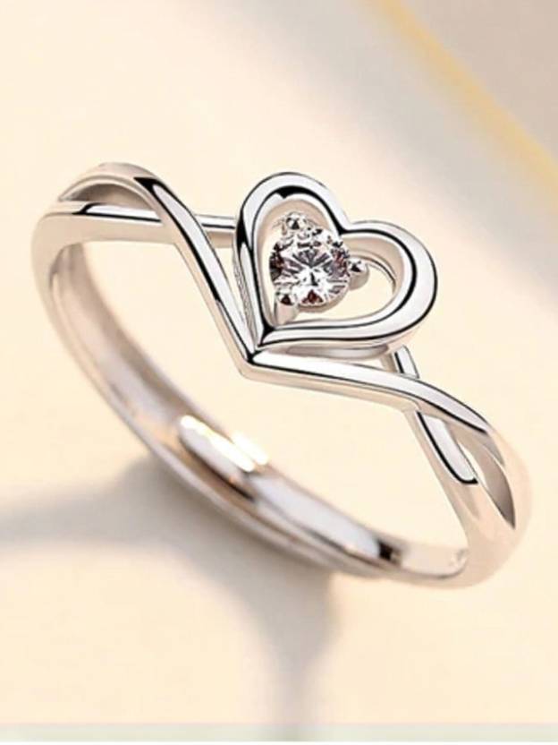 Devora Sizzling Solitaire Adjustable Heart For Women & Girls Stainless Steel Zircon Sterling Silver Plated Ring