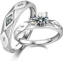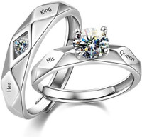 Devora Valentine King Queen Adjustable Couple for Girls and Women Stainless Steel Zircon Sterling Silver Plated Ring Set