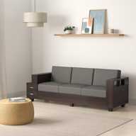 Devsignature 3 Seater WoodenSofa for Home Living Room with Mattress Fabric 3 Seater Sofa (Finish Color - Honey FinishGrey, DIY(Do-It-Yourself))