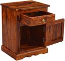 Devsignature Sheesham Wood Wooden Bedside Table For Bedroom | Nightstand Lamp Holder With Drawer & Door Cabinet Storage For Home Solid Wood Bedside Table (Finish Color - Honey Brown, Pre-assembled)