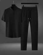 This tracksuit for men includes a jacket/upper and lower pant combo, providing a complete sporty look. The regular fit design allows free movement, while the elastic waistband ensures a secure and comfortable fit. The fabric is skin-friendly and sweat-absorbing, keeping you fresh during workouts, running, or long hours of wear.