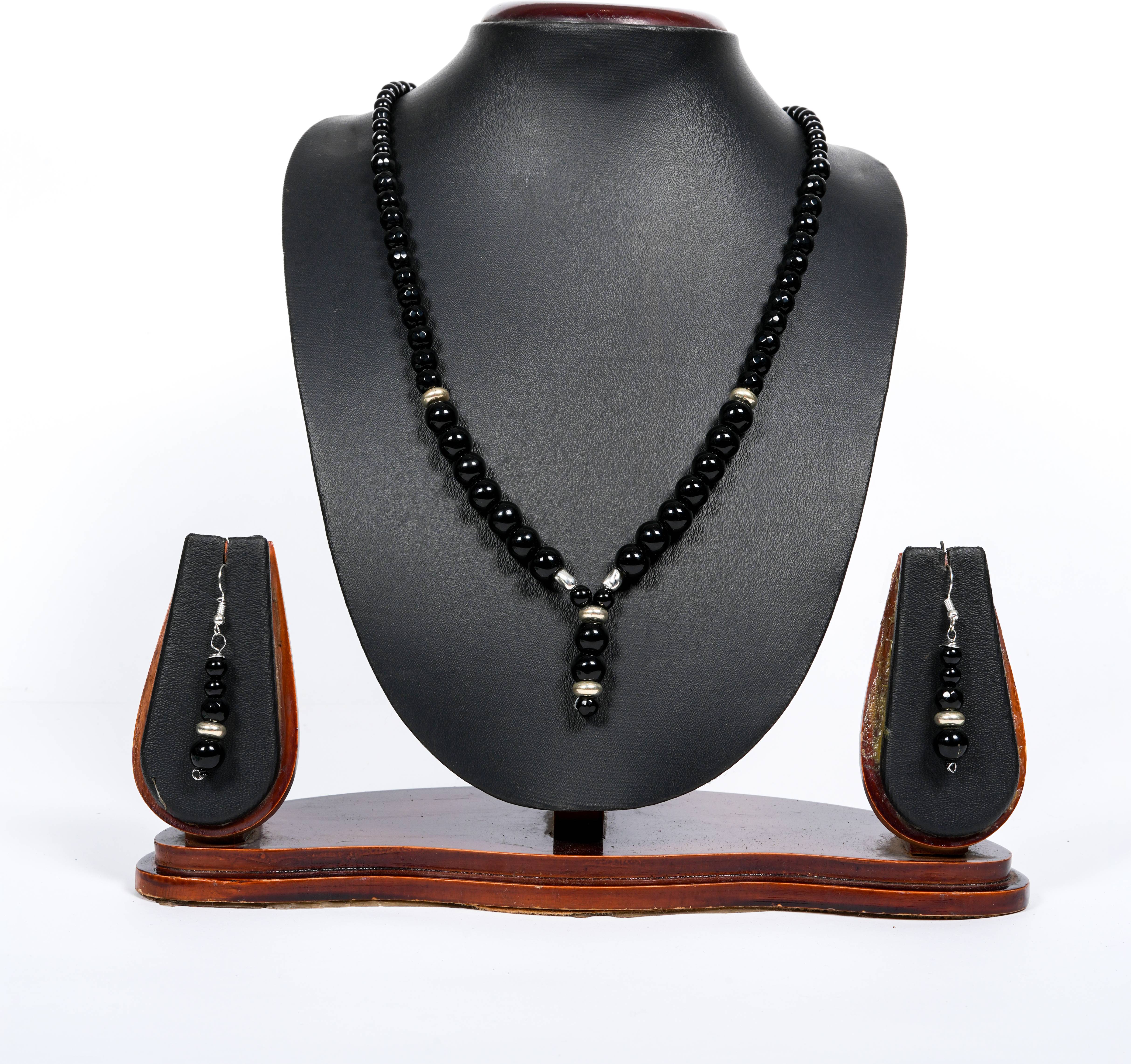 • Made entirely of polished round black beads, likely onyx or dyed agate, creating a sleek and classic look.