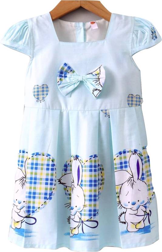 Girls Midi/Knee Length Casual Dress (Light Blue, Short Sleeve)