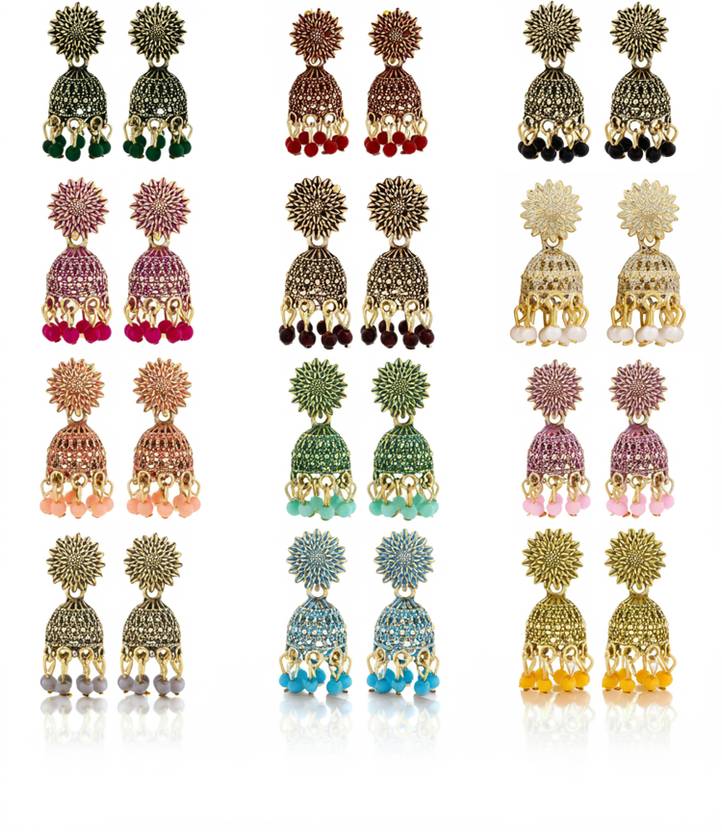 DEW MAT Small And Simpal Pack 12 Pair Alloy Jhumki Earring