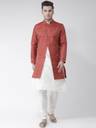DEYANN Men Maroon & Off White Sherwani With Achkan Printed Sherwani